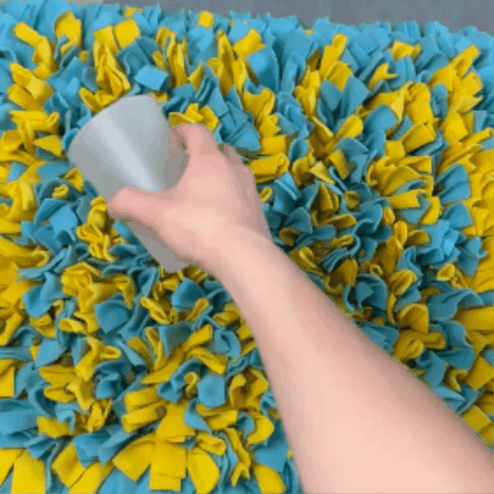 Simply hide dry food or treats throughout the fabric strips of the mat, then let your dog use their nose to sniff, search, and find the hidden food at their own pace.